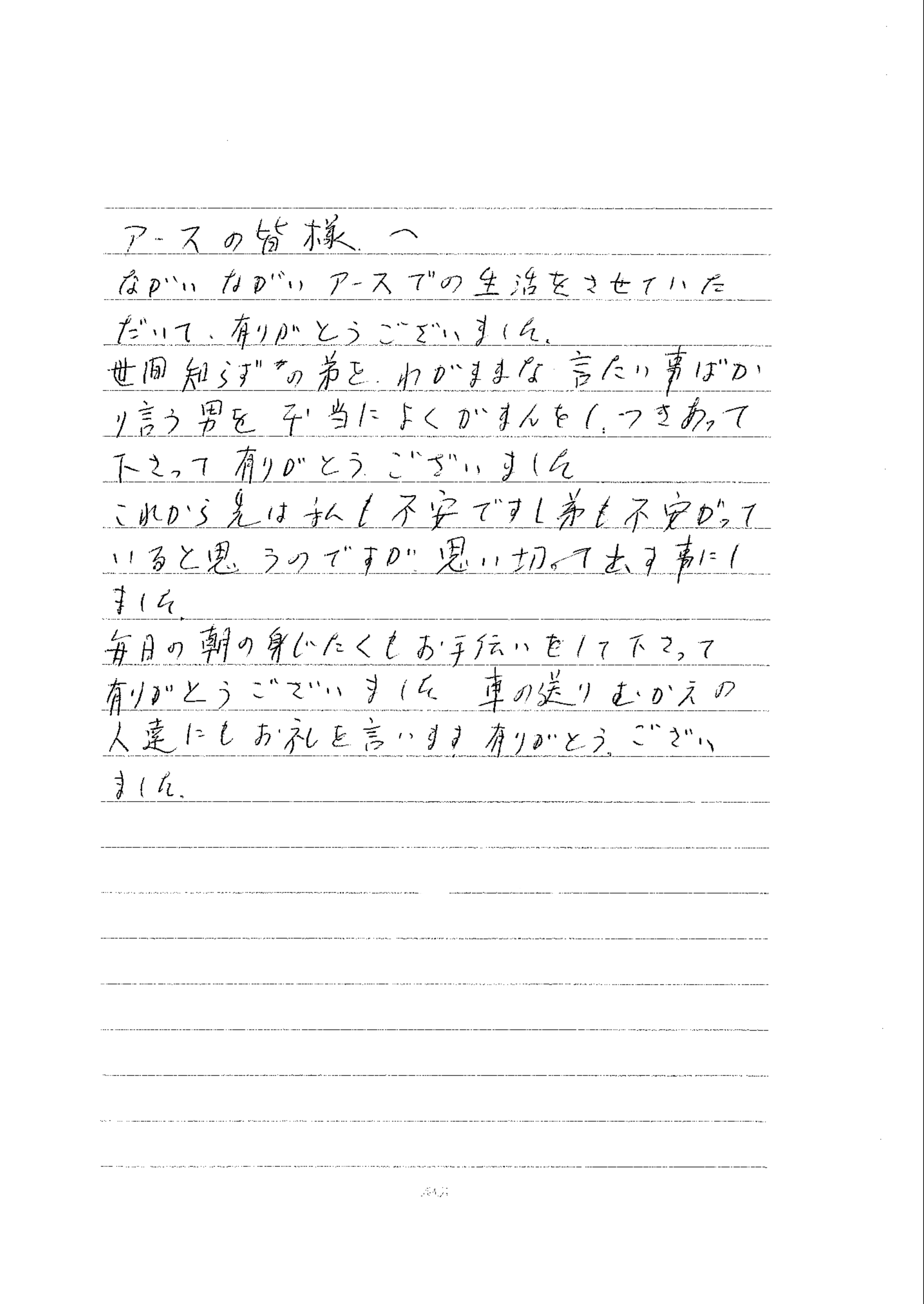 今回は、兵庫県にある「アースサポート姫路」のデイサービスをご利用いただいたお客様からのお手紙をご紹介いたします。