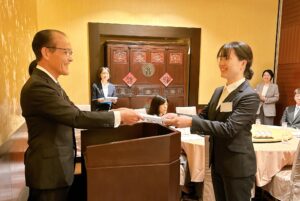 内定式終了後は、引き続き同じ会場にて懇親会を開催いたしました。どのテーブルからも笑い声が聞こえ、皆さんがリラックスして交流を楽しんでいる様子が印象的でした。